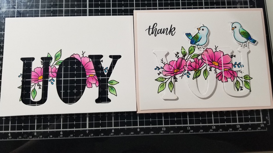 On the left, you can see how I wasted a panel I coloured and there’s no recovery for this. No amount of bling can cover this! I did my stamping and colouring again and made a beautiful thank you card.