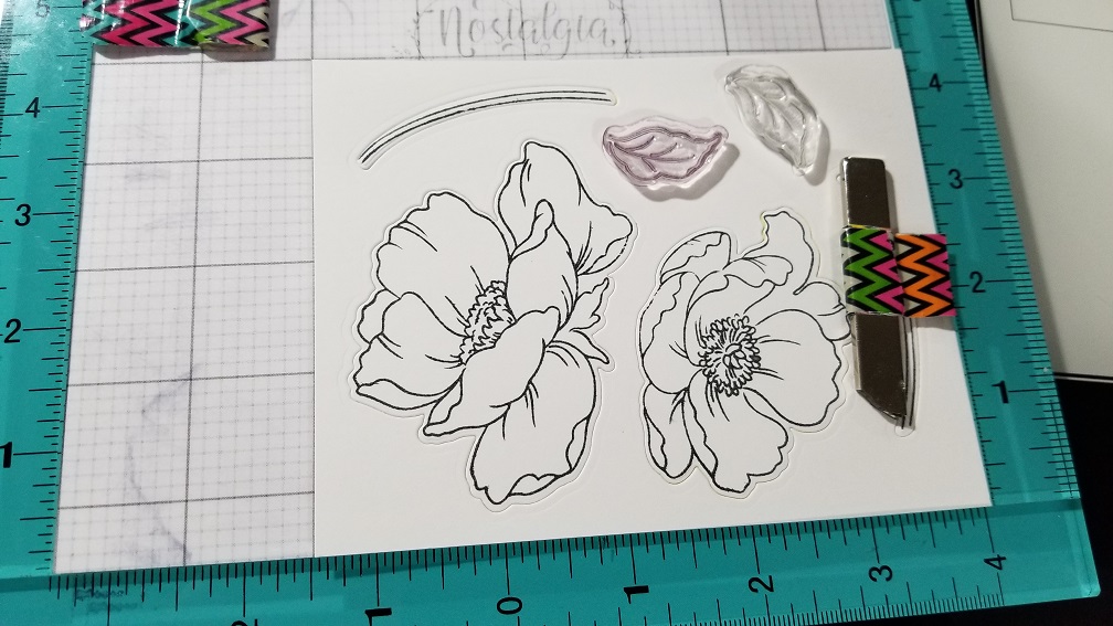 First, I die cut the flowers, stems and leaves. Then I used the outline paper to position my cuts and line up my stamps on those cuts – then used my positioner to stamp my image. I usually don’t do this, but I find I spend less time lining up my stamps than I do a die on a stamped image. This is something I plan on doing more often in the future.