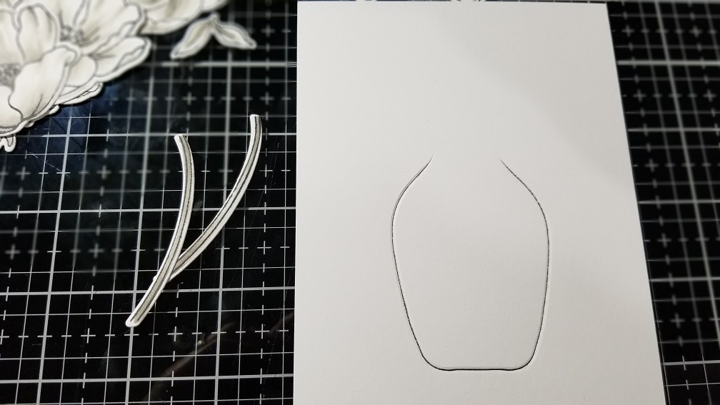 I then used my vase die and made a cut on my panel, but I didn’t use the entire length of the die. I took a blade and cut the vase short. I knew I wouldn’t need the height of the full vase.
