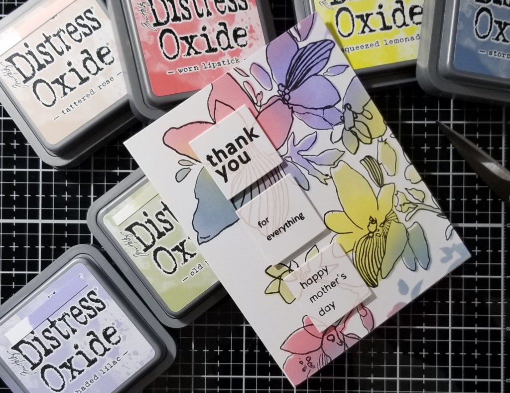 - Distress Oxide Ink – Tattered Rose – Shaded Lilac – Worn Lipstick – Old Paper – Squeezed Lemon – Stormy Sky