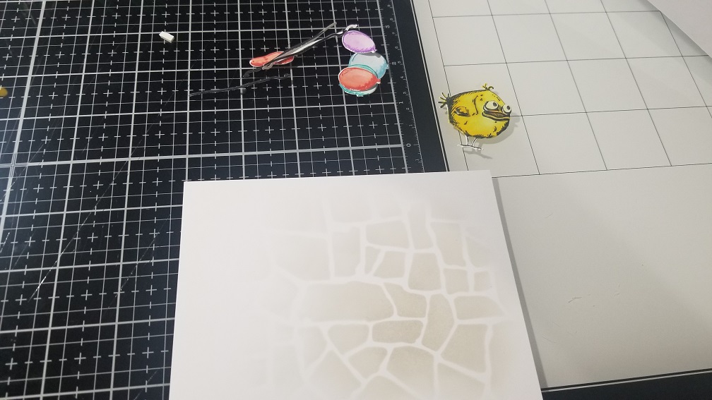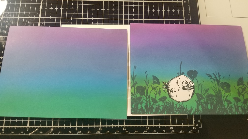 So, I had an idea that I would use one of the birds and make it look like he got lost in a field. I would create a blended background and use a stamp I haven’t utilized yet for the field. I would either create a die cut of the bird or create a mask of the bird in the field. I tried both and I didn’t like either of them so I halted my work. I did some nice blending though. 😁 (blending was done with distress oxide inks)