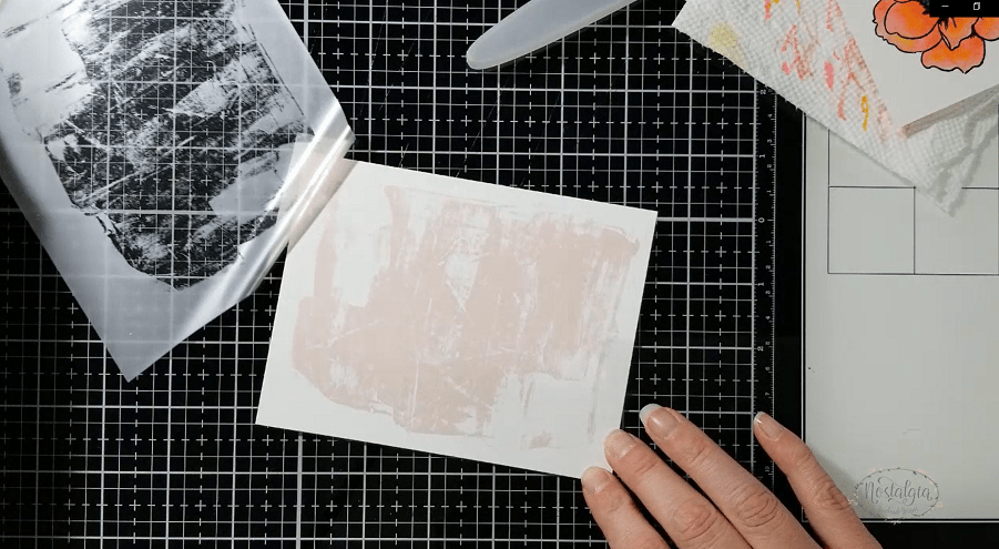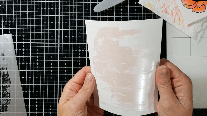 I dropped some of the adhesive onto my paper and smeared it across the panel with a scraper-type tool. I used my finger to smear it a bit more to rough it up a bit.