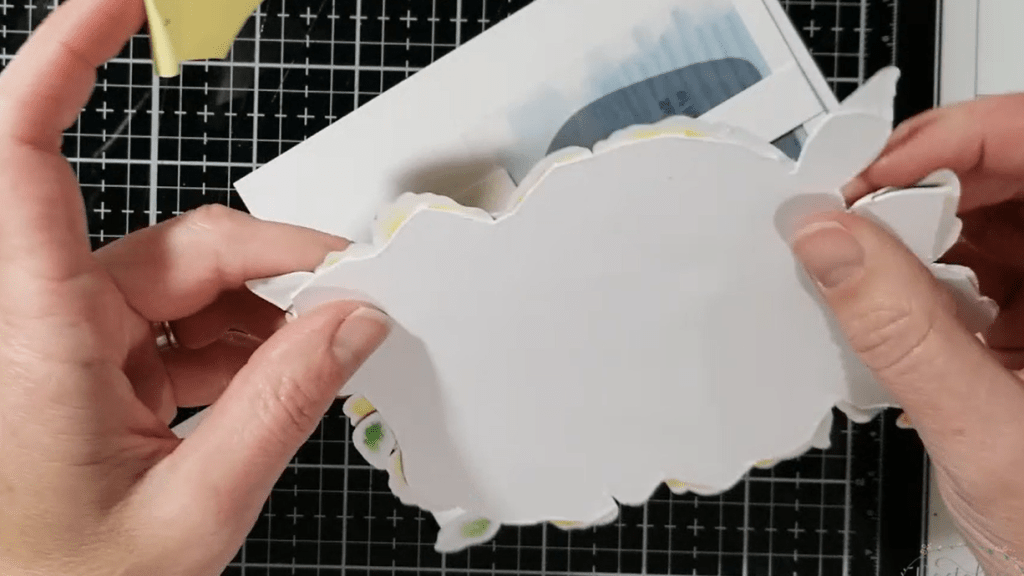 Now it’s time to put my bouquet onto my slider. I added a small piece of foam tape to the slider tab, and tested the location of my bouquet in the up and down position, making adjustments as needed.