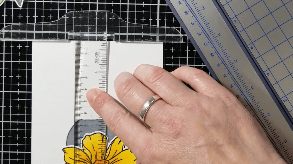 I took some rough measurements for my for the travel distance of my bouquet. I needed my flowers to travel roughly 2 inchs from the bottom of the card to the top of the vase. This would ensure that the top of my cut vase is covered when pulled up. Then I cut the slider opening in my card panel.