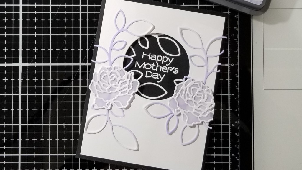 I took my shaded lilac and blended the color on my vellum. Because the vellum doesn’t absorb the ink and sits on top of the vellum, once I die cut my roses, I glued them to the back side of my blended vellum. I cut off the excess vellum around the die cut roses.