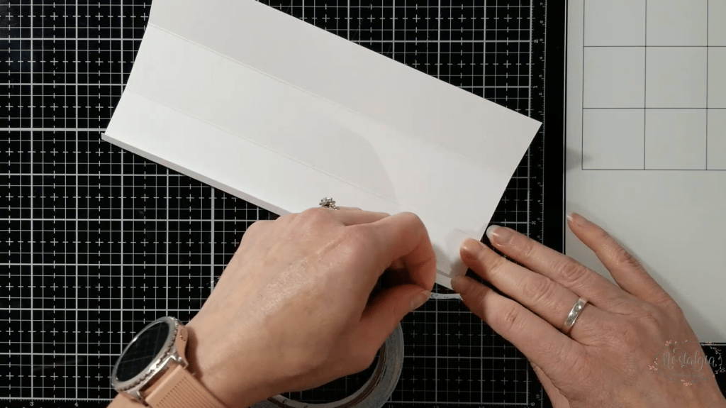 Score at 1.5 inch, 3 inch, and 4.25 inch. Fold at each score line and press with your bone folder.