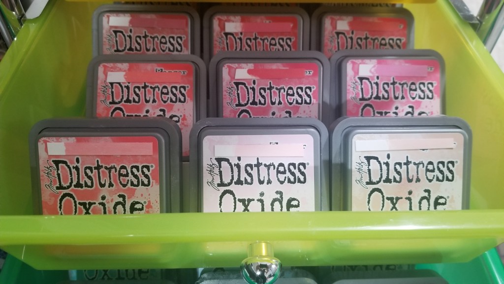 I don’t have a large beautiful craft room, but I do have an area where I craft and some simple drawers for my supplies. At some point I decided to get all the distress oxide inks, but I didn’t have a plan to organize them, and they were just thrown into a drawer.