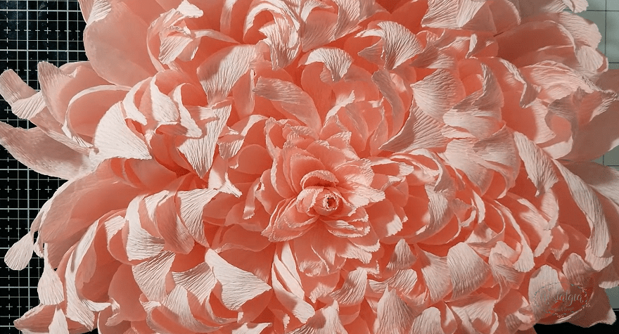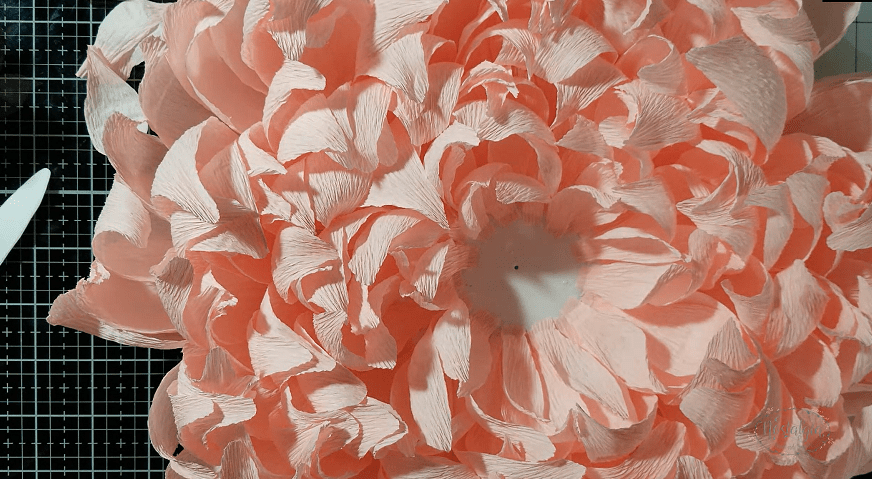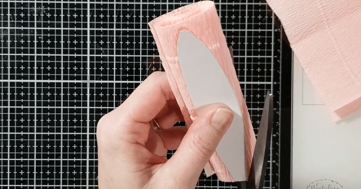 This is a simple flower to make but there’s a lot of petals to cut. I create my own templates just before I make the flower and adjust them as needed. Crepe paper flowers are so forgiving that I don’t often make any adjustments.
