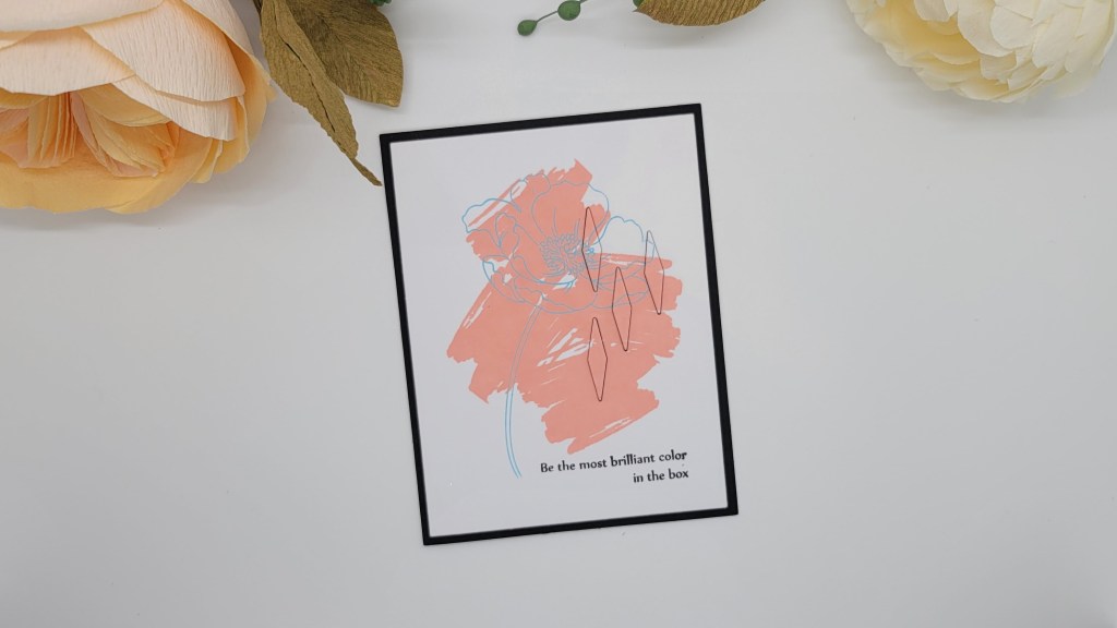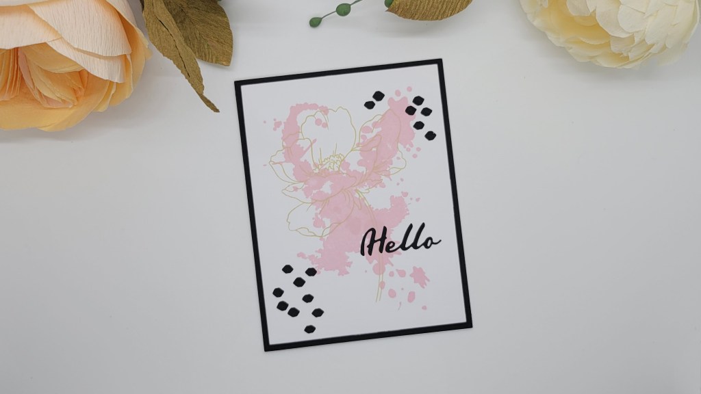 I used light colored dye inks to create my background with the brushstrokes stamps and splash of color stamps. I choose distress oxide inks, as they’re pigment inks and will sit on top of the background images stamped in dye ink. I kept the images simple, and tried to focus more on the contrast in colors between the background and flower.