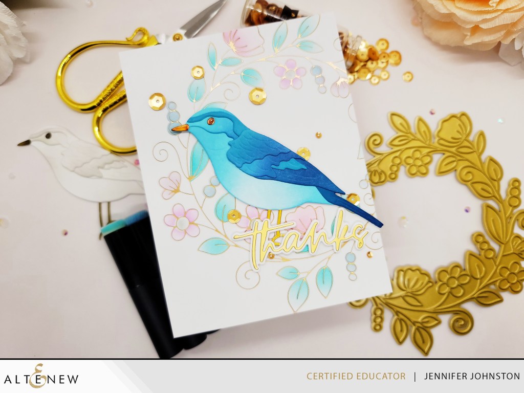 I’ll demonstrate various techniques including ink blending and foiling, and create a beautiful wreath and bird design. I’ll review the ease of assembling the bird using numbered die cuts and highlight the quickness of the process.