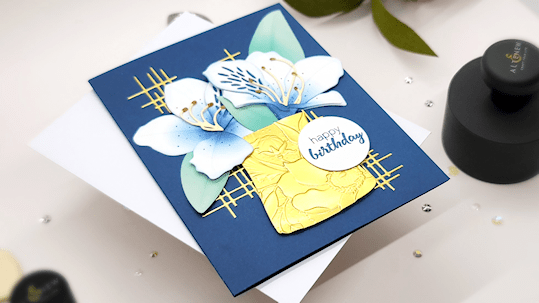 Hello, all. Welcome to my blog. This post was created as an extension to Altenew’s Educator Instagram Hop. Supplies Midnight Moths Billowing Peonies Brushed Gold Cardstock Tufted Elegance 3D Embossing Folder Ranger Ink – Princess Gold Thick Translucent Vellum